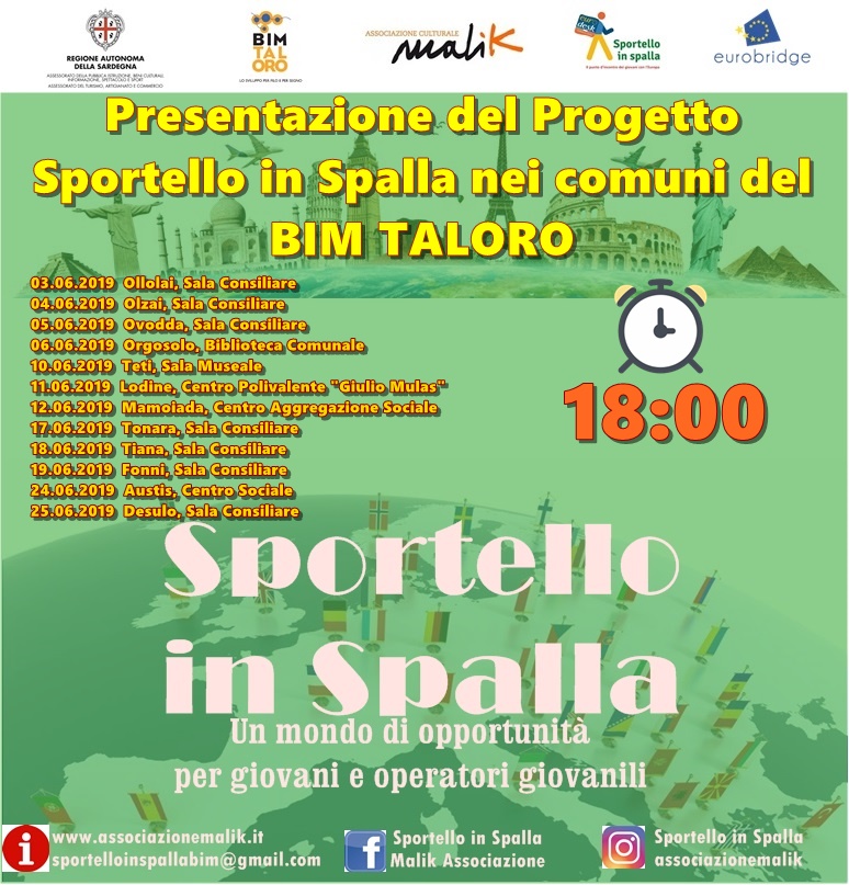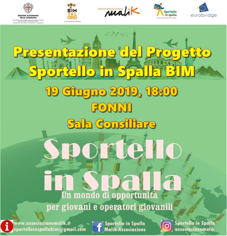 Il Consorzio BIM aderisce, per il secondo anno, a 'Sportello in Spalla', l'iniziativa promossa dall'Associazione Malik, in partenariato con Eurodesk Italy ed Eurobridge, e mirata a facilitare la partecipazione dei giovani, gli operatori giovanili e gli amministratori locali alle politiche, i progetti ed i programmi europei dedicati al mondo giovanile.